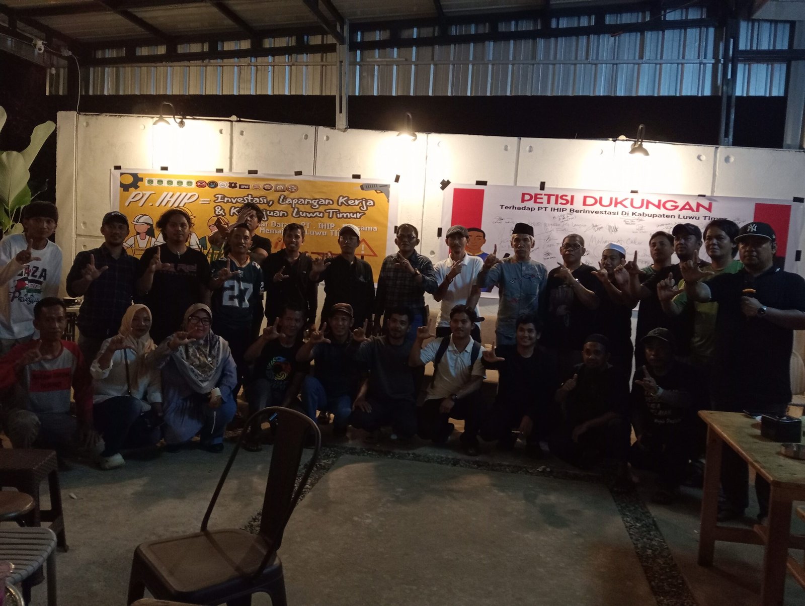 Luwu Timur, bilikf4kt@.id — Deklarasi 6 Desa Dalam wilayah Lingkar Tambang Kawasan Industri Luwu Timur Mendukung PT Indonesia Hualy Industri Park (IHIP) Untuk melakukan Investasi Di Lampia Desa Harapan Kecamatan Malili, pada Minggu Malam (19 Oktober 2025) di Warkop Andara Puncak Indah.