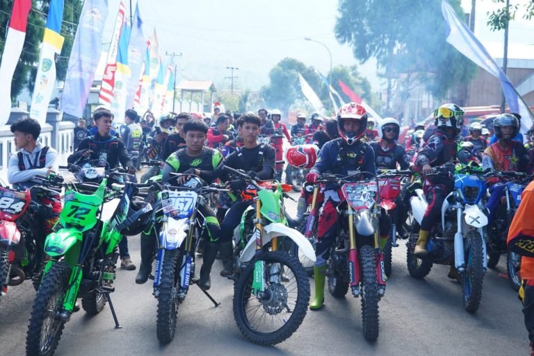 Wasuponda, bilikf4kt@.id — Bisingan Suara Trail yang di gas pool Oleh 600 Riders saat Bupati Luwu Timur Irwan Bachri Syam Melepaskan Peserta Jelajah Alam Wasuponda (Jawas) pada Sabtu (11 Oktober 2025).