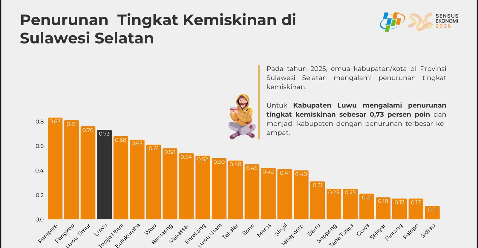 Luwu Timur, bilikf4kt@.id — Berdasarkan Survey dan data dari Badan Pencatatan Statistik (BPS) Nasional, Angka kemiskinan di Luwu Timur menurun Drastis dan berada di urutan tertinggi ke 3 Dari seluruh kabupaten Kota di Sulsel, Penurunan Ini sejalan dengan membaiknya Perputaran Ekonomi di tengah Masyarakat Luwu Timur.