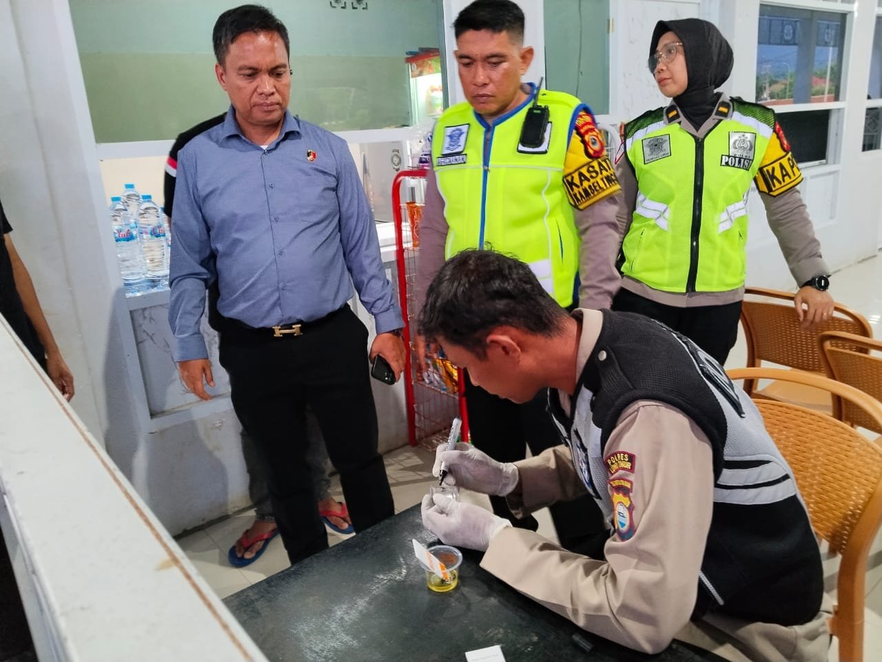 Malili, bilikf4kt@.id — Dalam Rangka Menekan Angka Kecelakaan di Jalan Raya, khususnya Bus Tujuan Makassar – Malili dan sekitarnya Polres Luwu Timur melalui unit Lantas dan unit Narkoba bekerjasama dengan Dinas Perhubungan Melakukan Tes Urine Kepada Sopir Angkutan Penumpang sebelum Bus diberangkatkan dari Terminal.