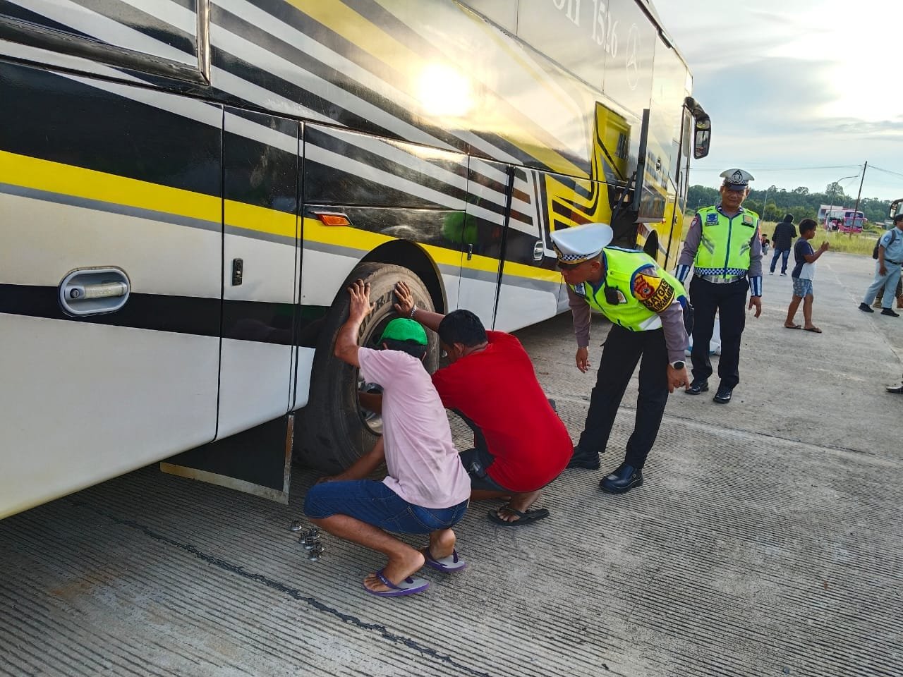 Bus yang Botak Bannya tidak laik jalan