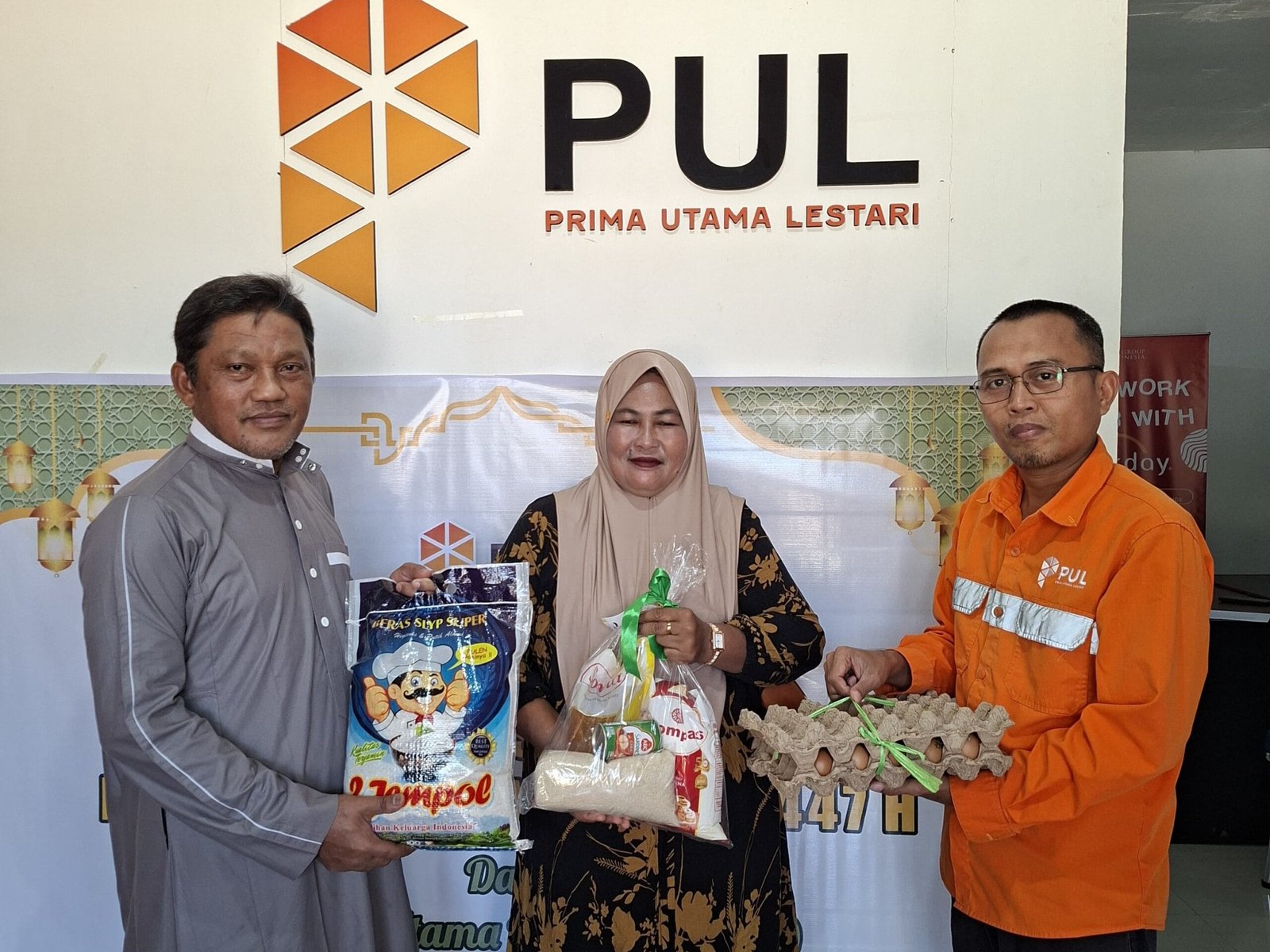 Paket Sembako Ramadhan disalurkan langsung kepada penerima di Kantor PT Pul yang diserahkan oleh Andi Usman mewakili Manajemen Perusahaan (PT PUL).