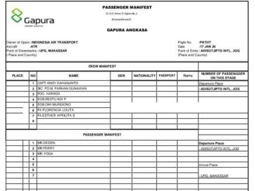 H. Wahyu juga mengirim daftar list Manifes pesawat yang diterimanya, tercantum Nama Fahrul Gunawan dalam List pesawat yang hilang kontak itu pada Urutan Kedua (Sebagai Co. pilot)