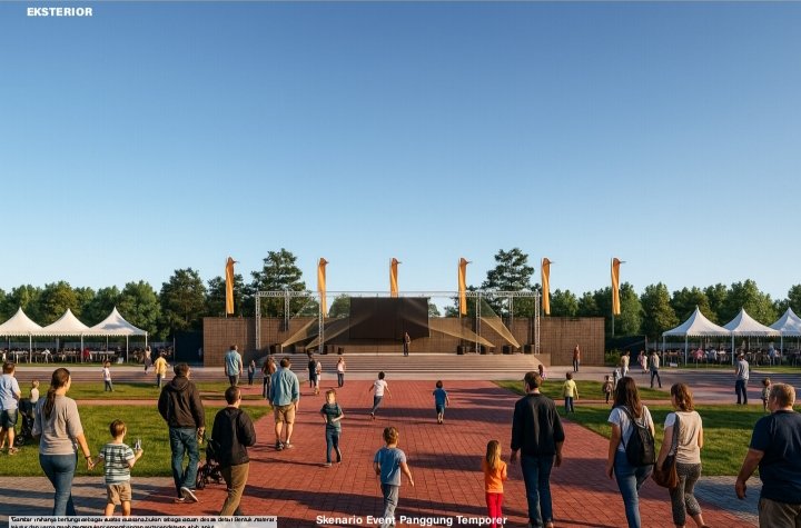 Pada area informal difungsikan untuk pameran dan lapak UMKM sedangkan area formal meliputi panggung utama tempat upacara dan panggung untuk konser,” paparnya.