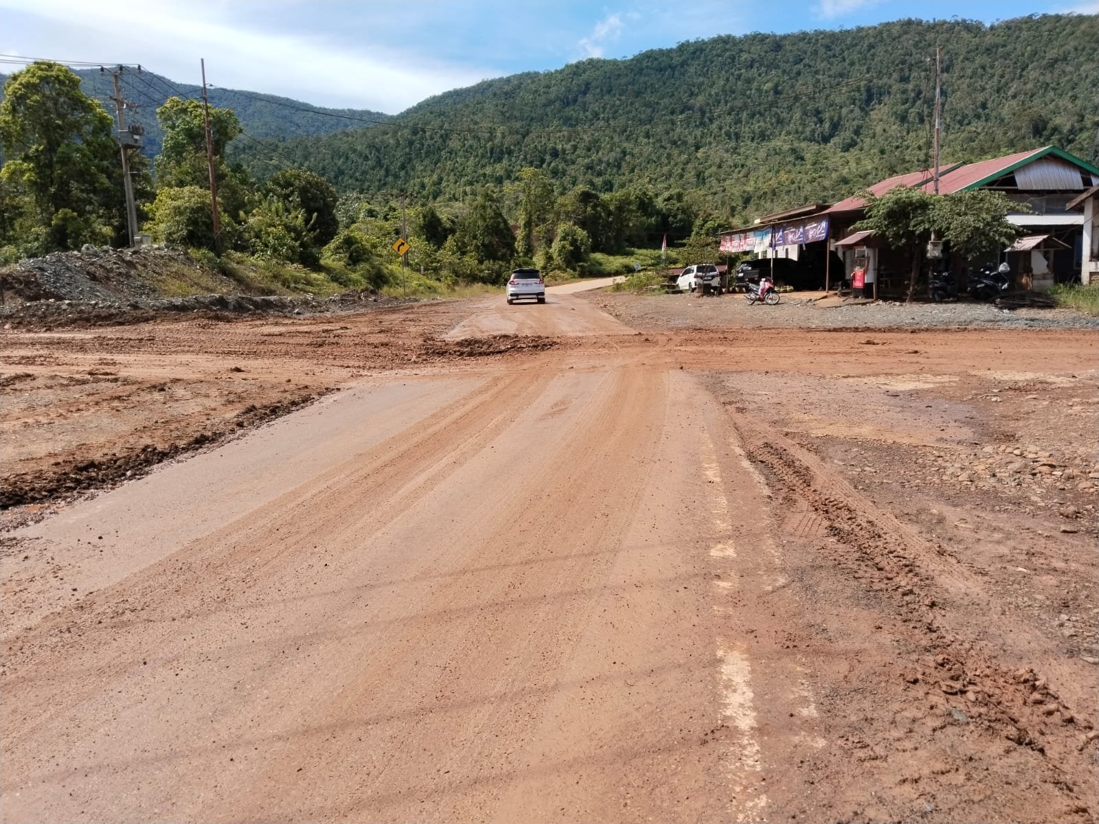 Lumpur yang Menutupi Aspal di jalan Trans Sulawesi itu terpantau pagi ini, Para pengendara yang hendak melintas harus berhati hati, terutama Pengguna roda Dua (motor), Sebab di lokasi penyebrangan Dump truk PT CLM ditutupi luberan Lumpur yang muda terjadi kecelakaan.
