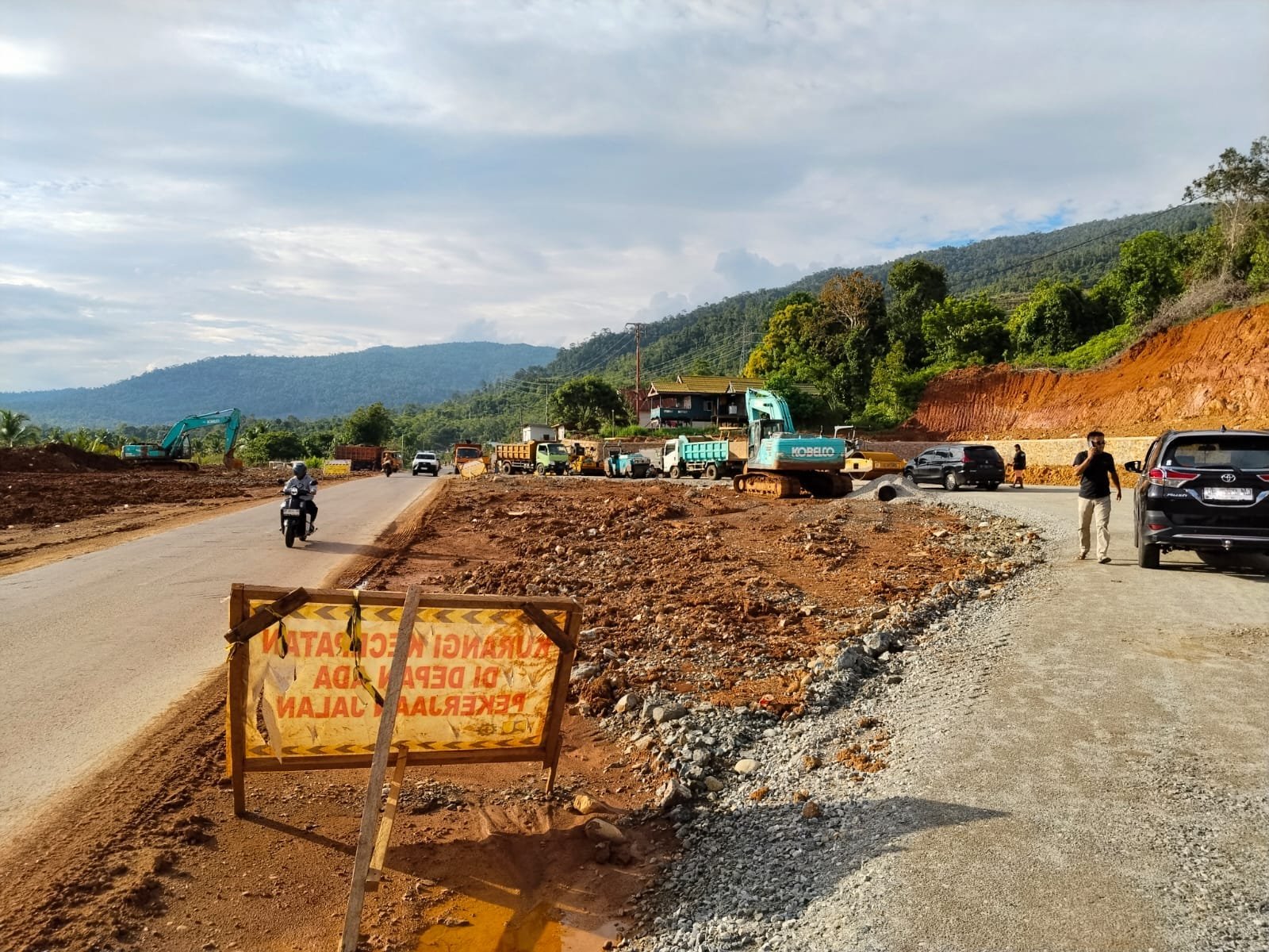 Menurutnya, tahap pertama’ Pembangunan jalur dua ini, kami mengikuti Petunjuk dari BBJN agar Membangun satu sisi Jalan serta penyiapan lahan untuk meletakkan Bundaran dan Pembangunan Tugu Batas kota, kata Abdul Gaffar.