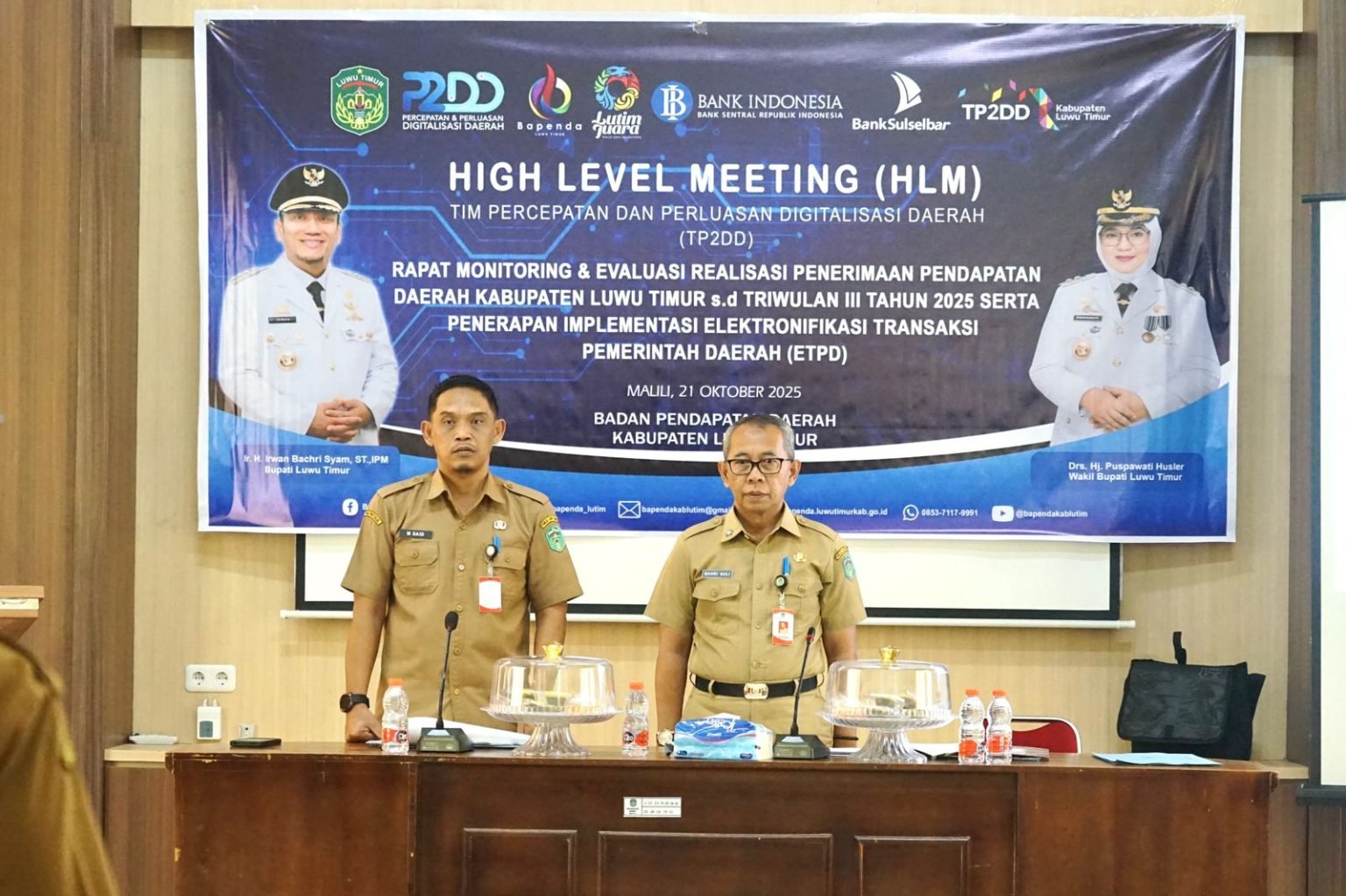 Luwu Timur, bilikf4k@.id – Guna memperkuat tata kelola keuangan daerah yang transparan, akuntabel, dan berbasis digital, Pemerintah Kabupaten Luwu Timur melalui Badan Pendapatan Daerah (Bapenda) menggelar High Level Meeting (HLM) Tim Percepatan dan Perluasan Digitalisasi Daerah (TP2DD).