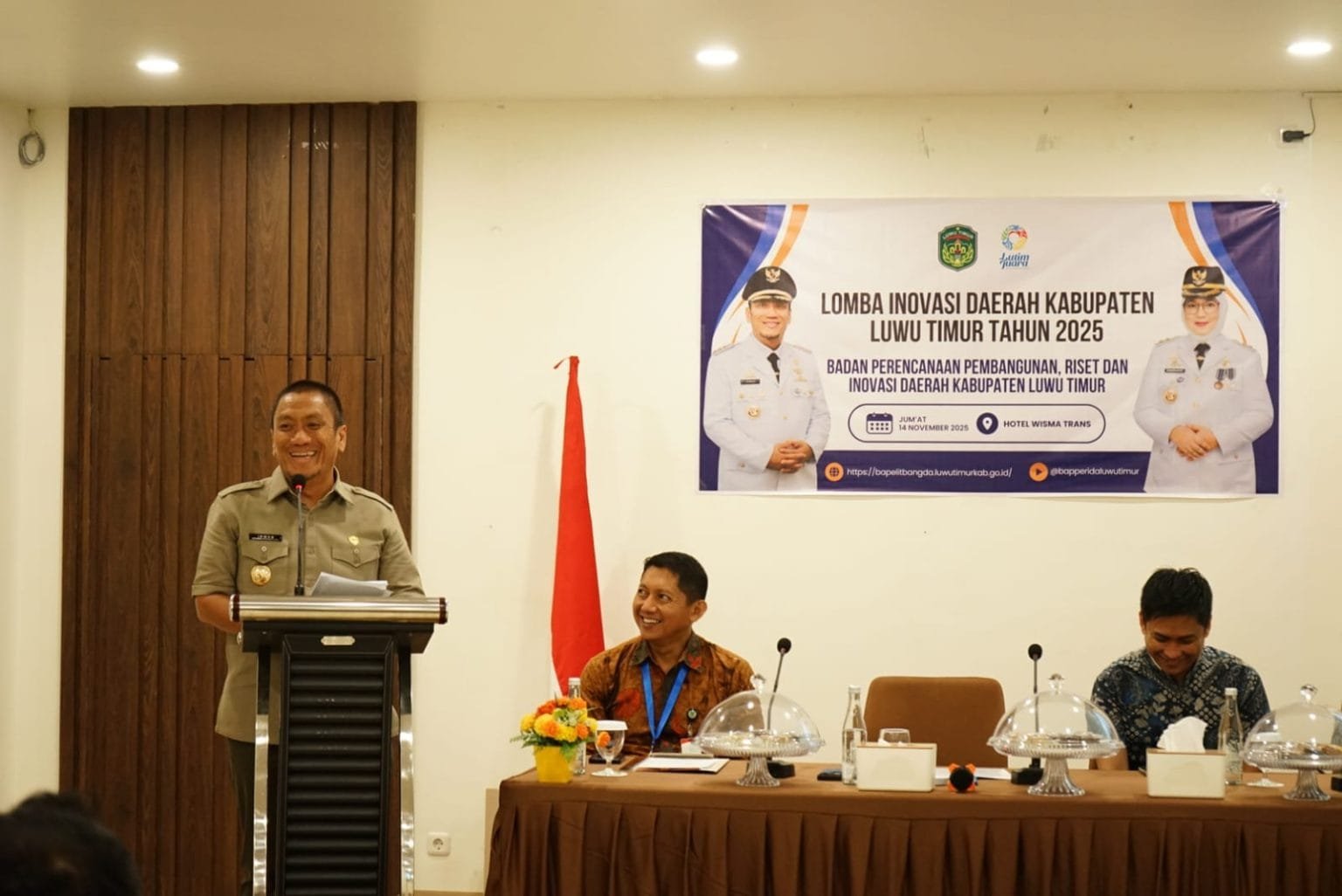 Luwu Timur, bilikf4kt@.id – Bupati Luwu Timur, Irwan Bachri Syam, menghadiri sekaligus ikut terlibat sebagai penilai pada Lomba Inovasi Daerah Kabupaten Luwu Timur Tahun 2025 yang digelar oleh Badan Perencanaan Pembangunan, Riset dan Inovasi Daerah (Bapperida) Lutim, di Wisma Trans Malili, Jum’at (14/11/2025).