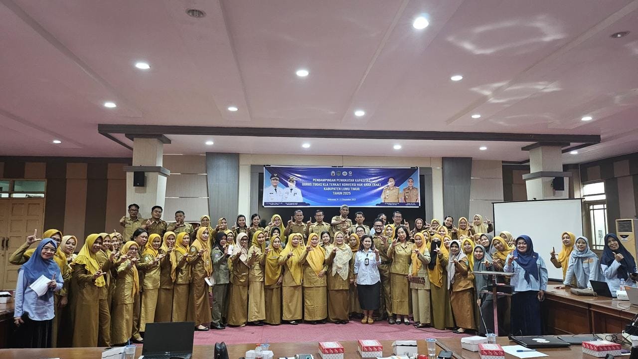 Luwu Timur, bilikf4kt@.id– Pemerintah Kabupaten Luwu Timur (Pemkab Lutim) menyelenggarakan Pendampingan Peningkatan Kapasitas Tim Gugus Tugas Kabupaten Layak Anak (KLA) yang berlangsung pada 9–11 Desember 2025 di Aula Dinas P3A DaldukKB Provinsi Sulawesi Selatan.
