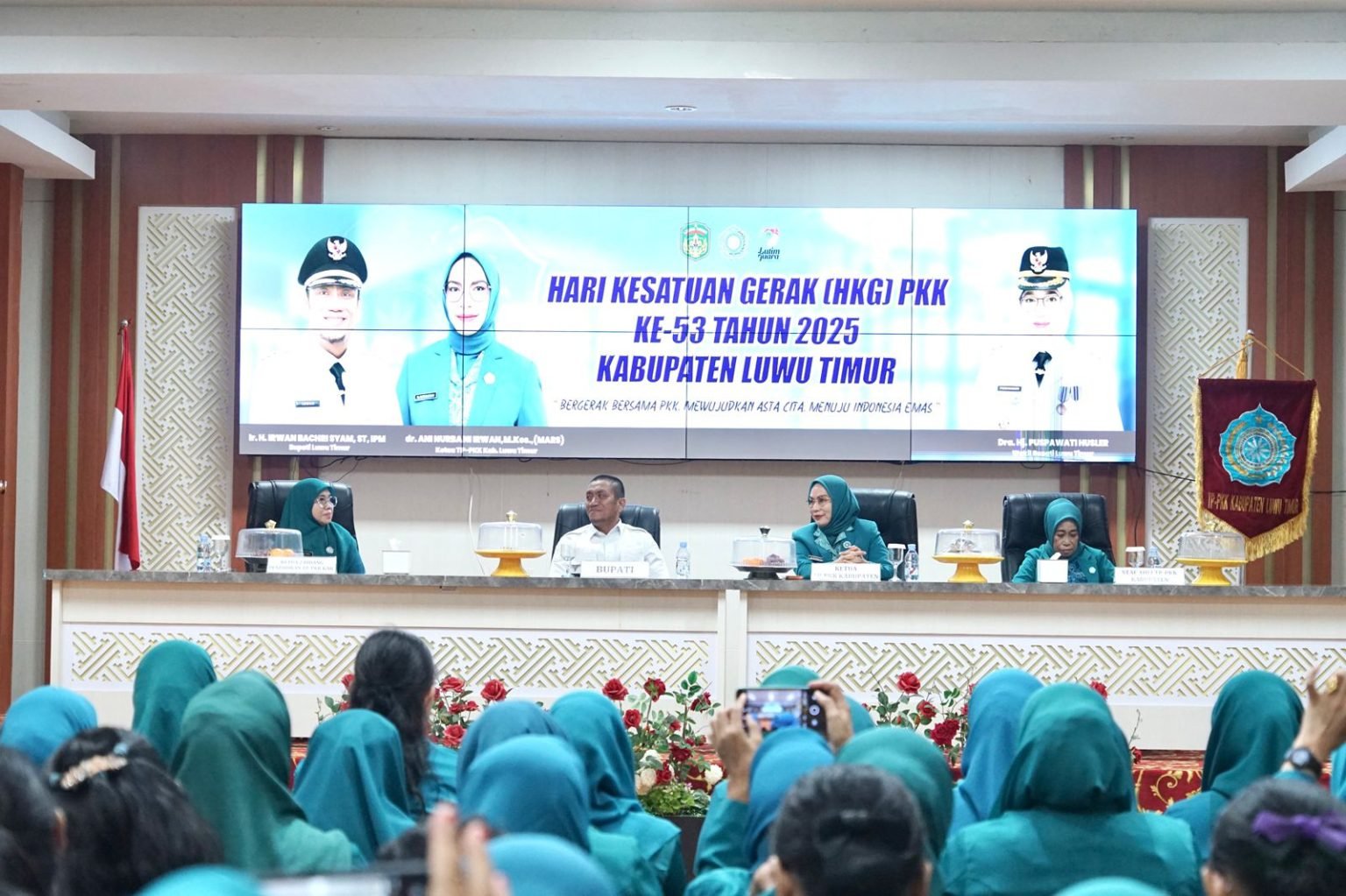 Luwu Timur, bilikf4kt@.idPeringatan Hari Kesatuan Gerak (HKG) PKK ke-53 Tingkat Kabupaten Luwu Timur digelar sebagai momentum penting untuk memperkuat semangat kebersamaan, kreativitas, serta peran strategis PKK dalam mendukung pembangunan daerah.
