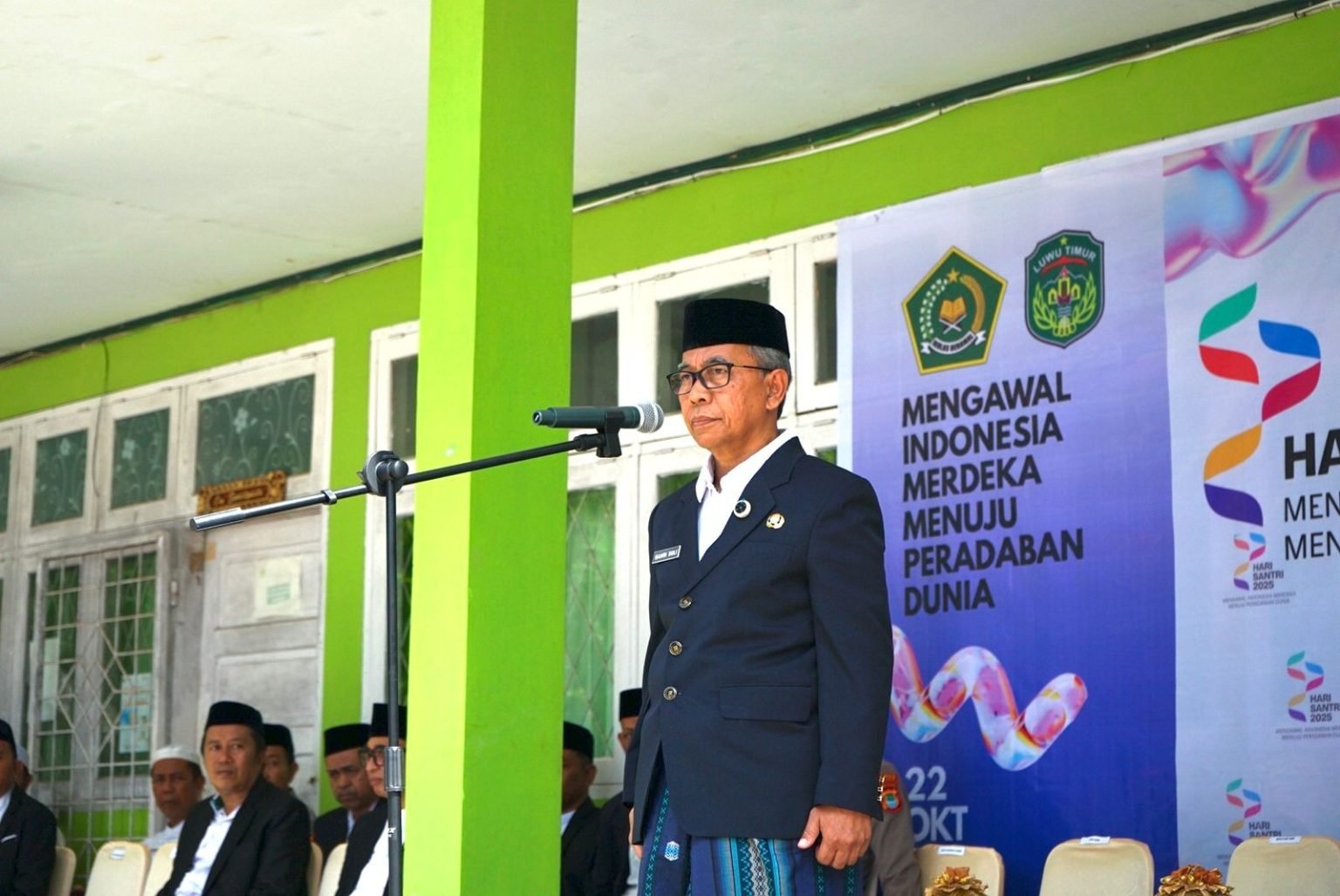 Luwu Timur, bilikf4kt@.id– Sekretaris Daerah (Sekda) Luwu Timur, H. Bahri Suli memimpin Apel Peringatan Hari Santri Nasional (HSN) dengan tema “Mengawal Indonesia Merdeka Menuju Peradaban Dunia” yang berlangsung di Halaman Kantor Kementerian Agama Lutim, Rabu (22/10/2025).